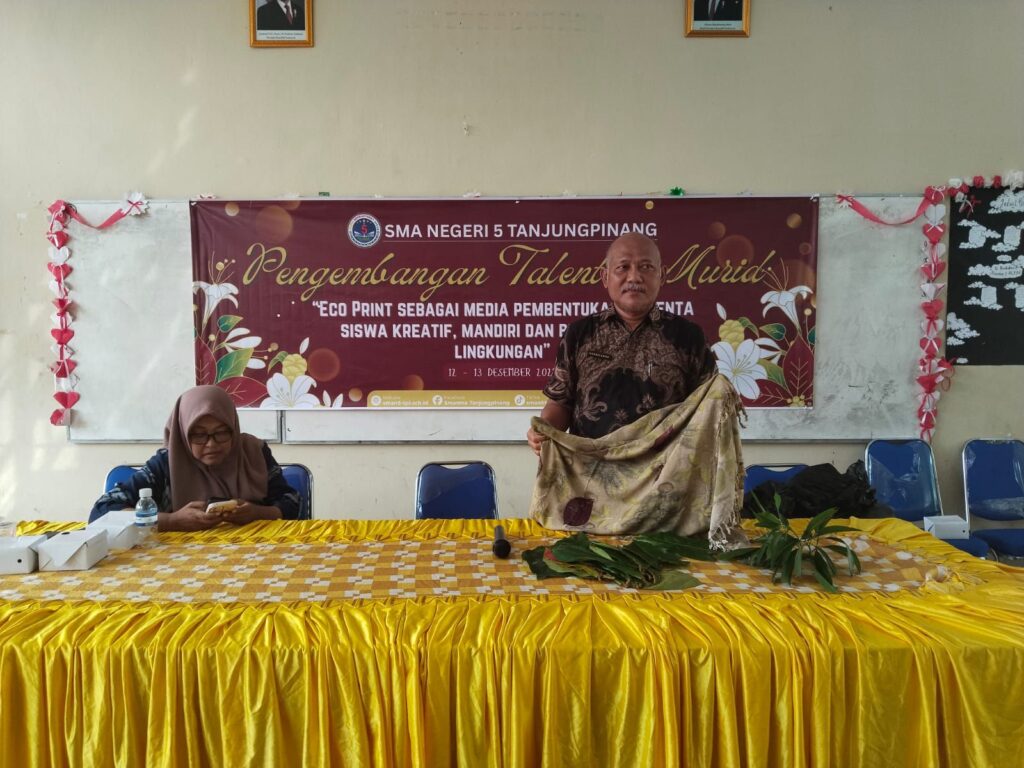 Kompasia.id, Tanjungpinang- SMA Negeri 5 Tanjungpinang mengadakan pelatihan pengembangan talenta murid dengan tema ‘ Ecoprint sebagai media pembentukan talenta siswa kreatif, mandiri dan berwawasan lingkungan. Jumat, (12/12/26)